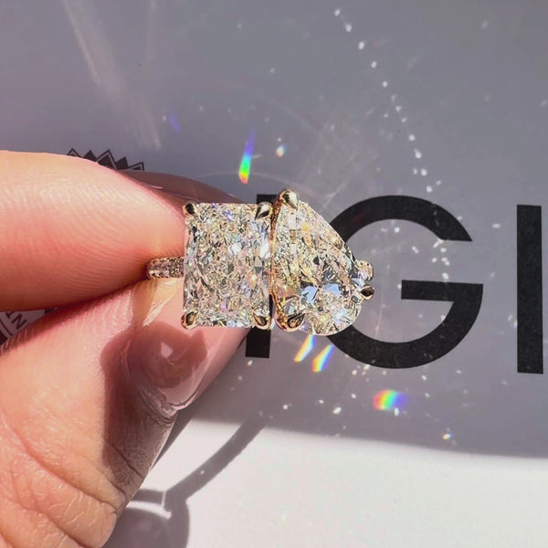 Toi Et Moi Radiant and Pear Diamond Engagement Ring