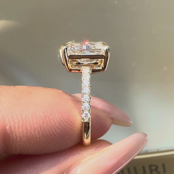 Although dating back to 1796, it gained renewed popularity with its modern architectural style that became extremely popular among celebrities like Ariana Grande, Megan Fox, and Kylie Jenner. Apart from fashion statements, people opt for this design to make a unique engagement ring as it gives more options for customization than a solitaire ring does, letting you combine different diamond shapes.