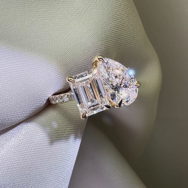 • Emerald and Pear Ring: This pairing brings together the best of both worlds. The Emerald cut offers a calm, "hall-of-mirrors" elegance with its clean, rectangular lines (known as step-cuts), while the Pear shape adds a splash of brilliant, modern sparkle. It’s a balanced look that feels both architectural and romantic.