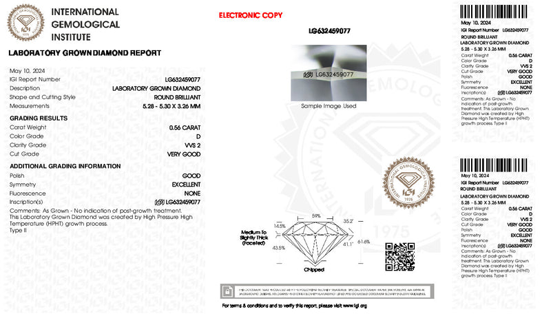 0.56 Carat Round Lab Created Diamond