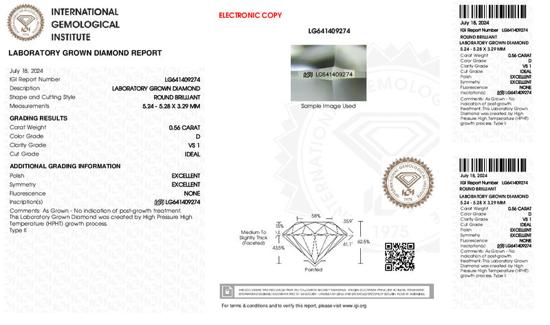 0.56 Carat Round Lab Created Diamond